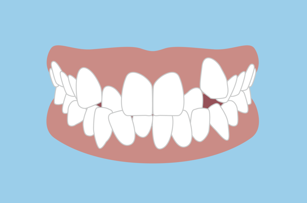歯列の幅が狭くなると、永久歯が生えてくるスペースが不足し、将来的に歯が重なって生えてくる「叢生(そうせい)」の原因になる可能性があります。